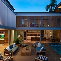 모래로 덮인 마당이 있는 리조트 같은 분위기는 독립적 인 파빌리온, 전용 욕실과 안뜰 샤워시설에서 더욱 돋보인다. 피지의 자연환경과 잘 어울리는 주택으로 화이트톤을 기본으로 나무 목재를 적절하게 사용하여 아름다운 주택을 만들었다. 이 멋진 주택은 목조건축으로 유명한 crosson clarke carnachan architects 에 의해 건축되었다.